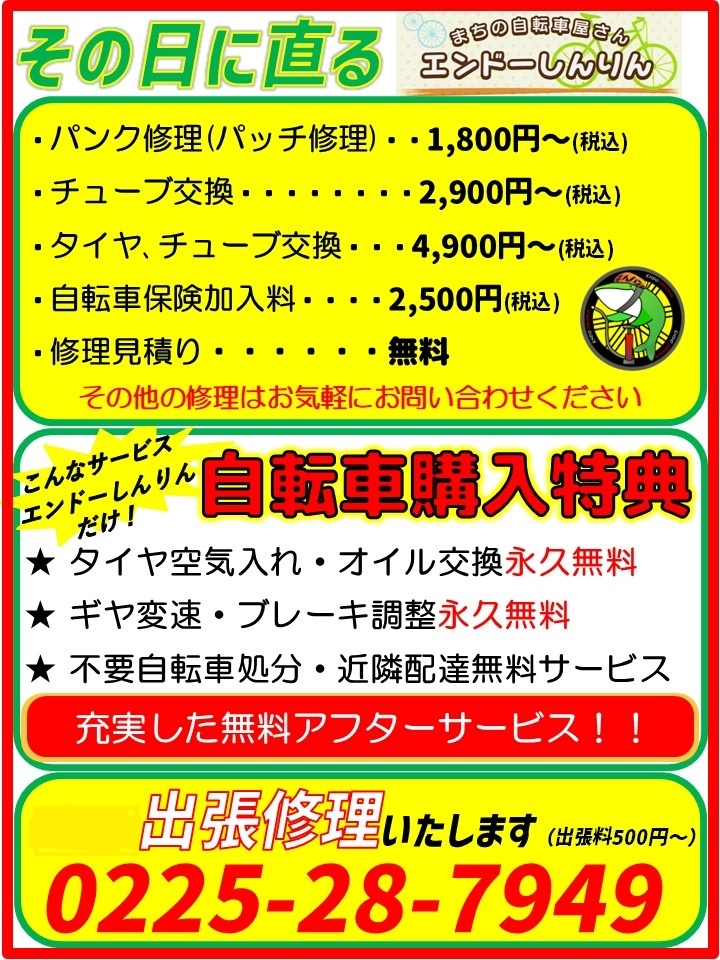 エンドーしんりんは宮城県石巻市にある創業100年の総合自転車専門店です。
